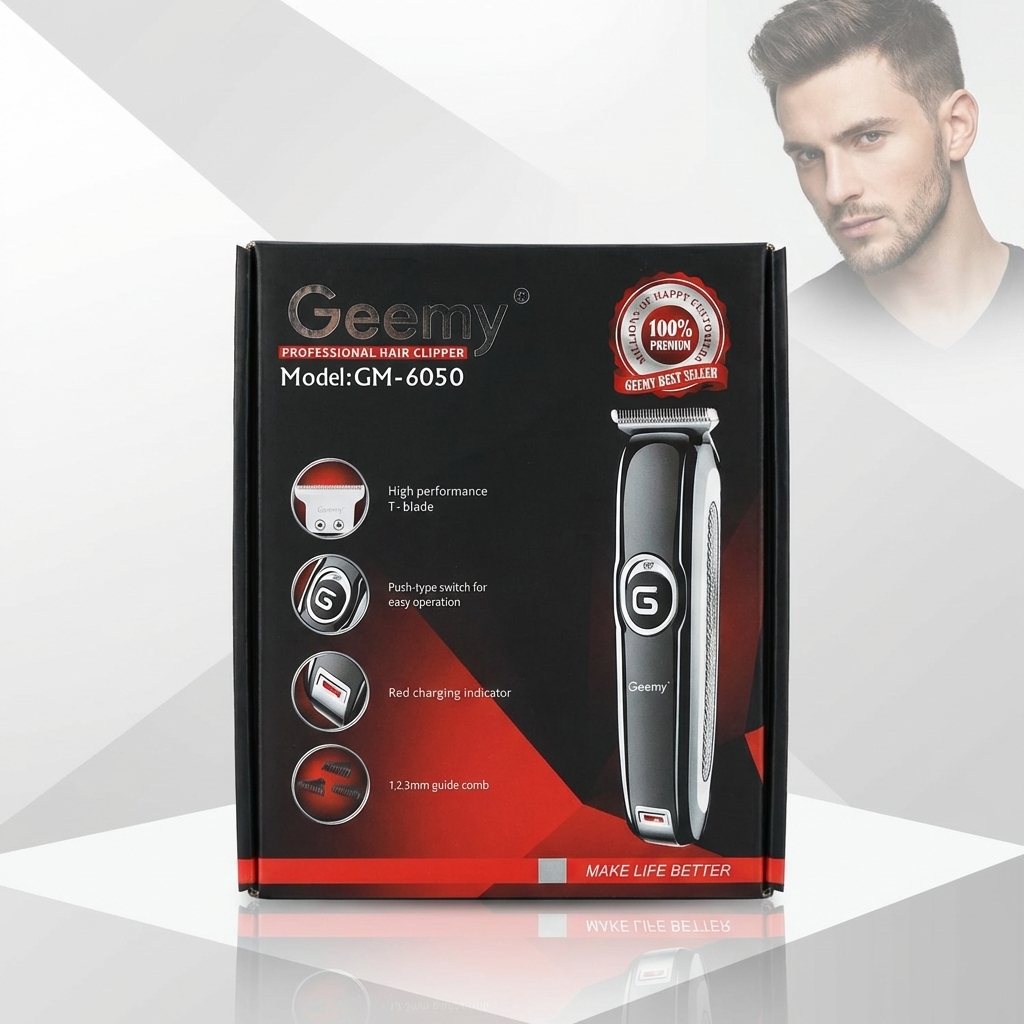 Geemy GM-6050 Professional Hair Clipper Delivers salon-quality precision cuts at home: Clipper Type: High-performance T-blade for precision trimming. Benefits: Cordless convenience, sharp stainless steel blades, easy one-touch operation. Suitable For: Men, Barbers, All hair types.