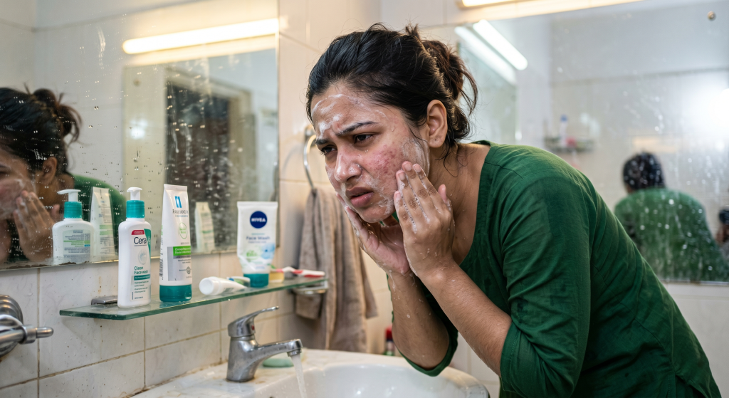 The Fix: Stick to the golden rule of cleansing—wash your face only twice a day (once in the morning and once at night) using a gentle, pH-balanced cleanser. If you get sweaty mid-day and absolutely need to refresh, simply splash your face with plain, cool water, or gently press a blotting paper against your skin. Leave the cleansers for your morning and evening routines!