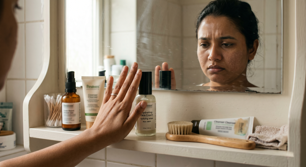 Culturally, many of the traditional creams and lotions sold locally are incredibly thick, heavy, and occlusive. When you mix a heavy, buttery cream with Dhaka weather skincare realities—like extreme heat and humidity—it sits on top of the skin like a suffocating mask. It’s no wonder so many women with oily skin abandon moisturizers entirely!